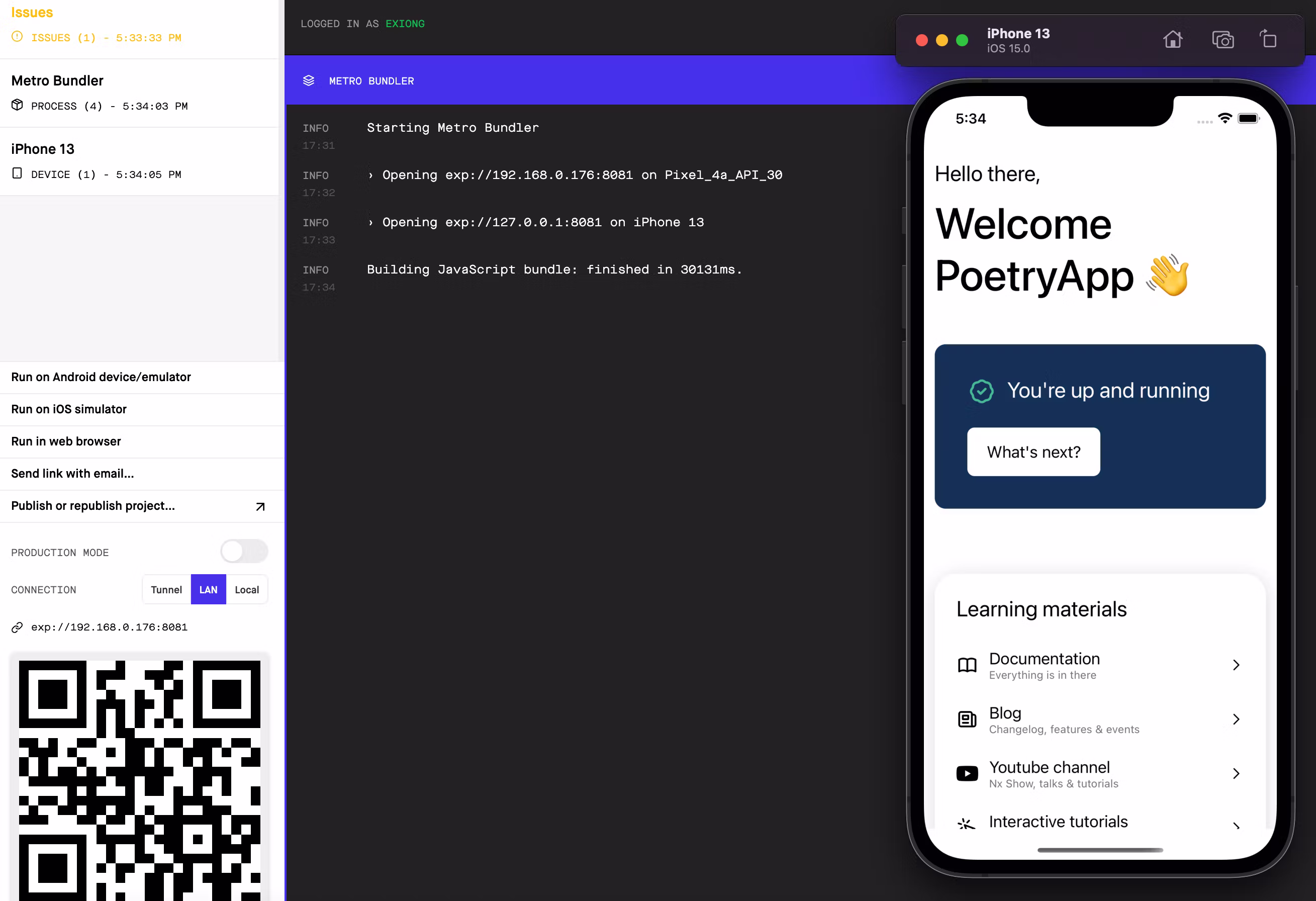 Now, if you run command nx start poetry-app and then run the app on the simulator, you should see: